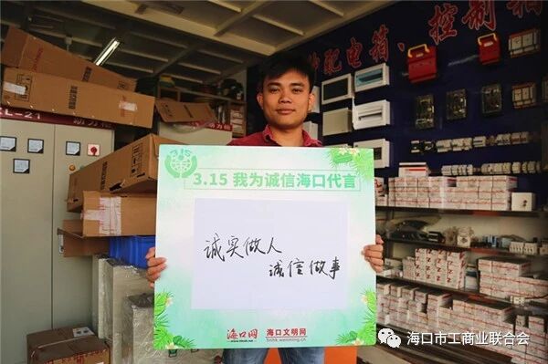 为加大对文明经商、诚信经营的宣传,海口市文明办、海口网联合市工商联和各文明单位志愿者,通过邀请市民网友在纸上写下自己的诚信宣言,并拍照上传微博、微信,以此影响并带动更多人为诚信海口代言。